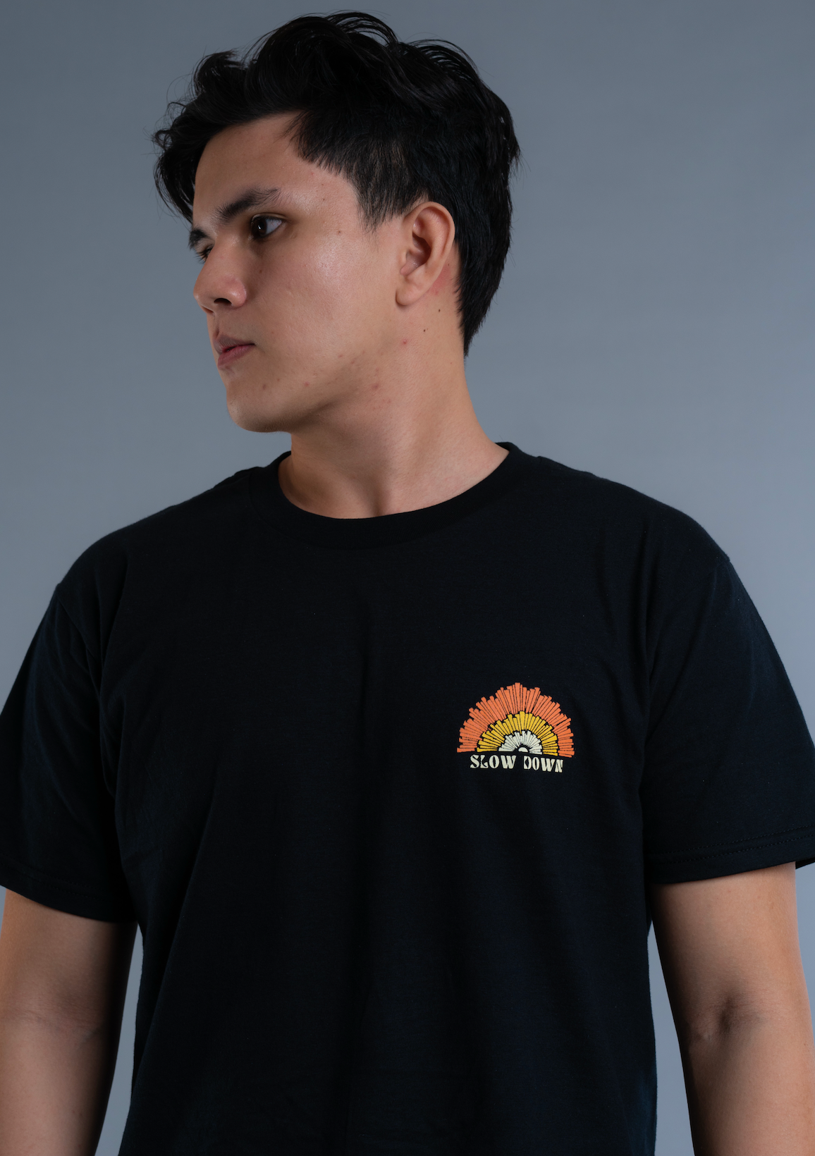 Let it breathe and slow things down with our new 100% cotton T-shirt, SLOW DOWN. Only available in black.